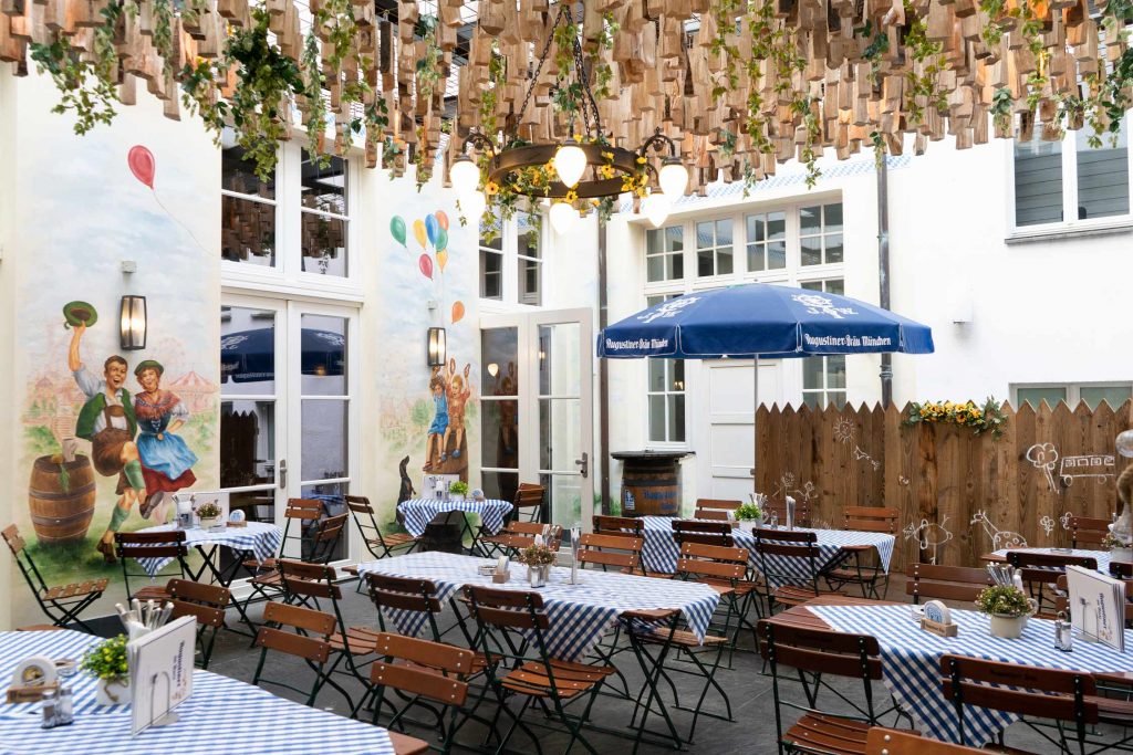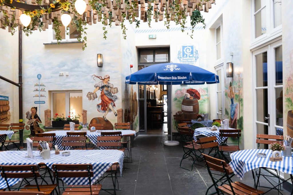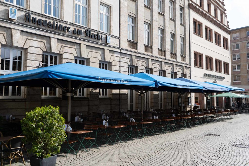 Hier ist das pulsierende Stadtleben der sächsischen Metropole erlebbar und spürbar. Unter den großen Augustiner Sonnenschirmen lässt sich bei jedem Wetter Platz nehmen und kulinarisch verweilen. Bei kühlem Augustiner Bier, typischen Brauhaus-Schmankerln oder Erfrischungen laden zahlreich vorhandene Plätze zum Genießen ein. Ob Spaziergänger, City-Tourist, Radler oder Kulturinteressent – hier trifft man sich gern. Unsere Küche bietet für jeden Geschmack die richtige kulinarische Begleitung dazu.