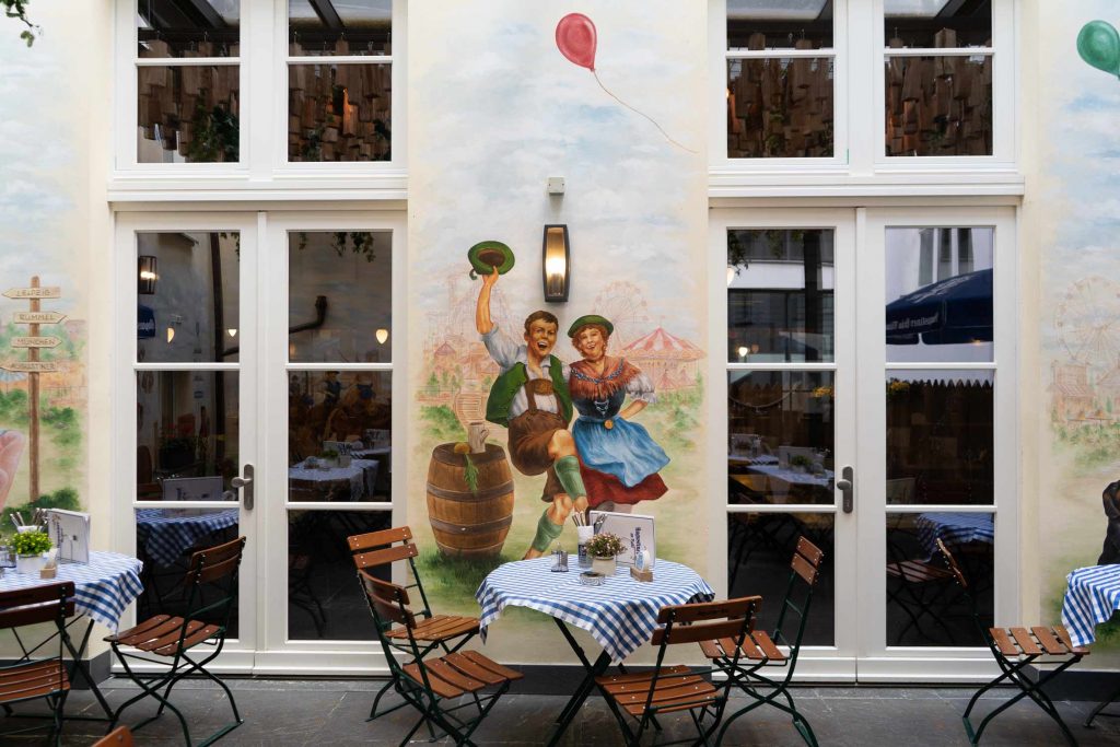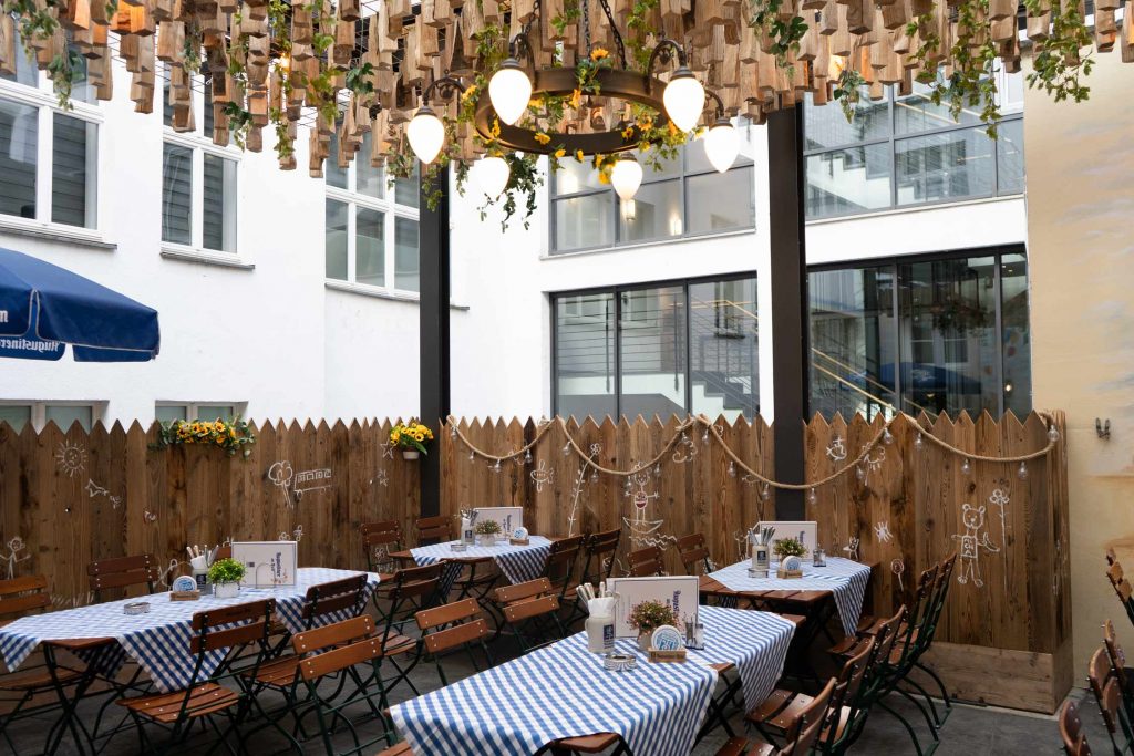 Und wer es lieber ruhiger mag, der findet in unserem inneren LICHTHOF eine kleine Oase der Ruhe – drinnen und doch draußen. Liebevoll gestaltet mit handverzierten Wandmalereien und gemütlicher Atmosphäre kommt schnell ein entspanntes Gefühl auf und bleibt das pulsierende Leben etwas entfernt. Ob Nachbarn oder Müßiggänger – hier trifft man sich gern.